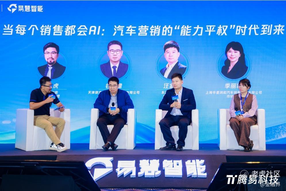 在圆桌论坛环节,易慧智能销售总经理雍虎与天津捷通达汽车投资集团有限公司事业部总裁谷亚雷、东风卓联集团新媒体部长汪象超、上海华星鸿和汽车销售服务有限公司市场经理季丽君等嘉宾,围绕“当每个销售都会AI:汽车营销的‘能力平权’时代到来”展开深度对话,共同探讨AI技术普及对营销组织、人员能力与生态格局带来的深远影响。