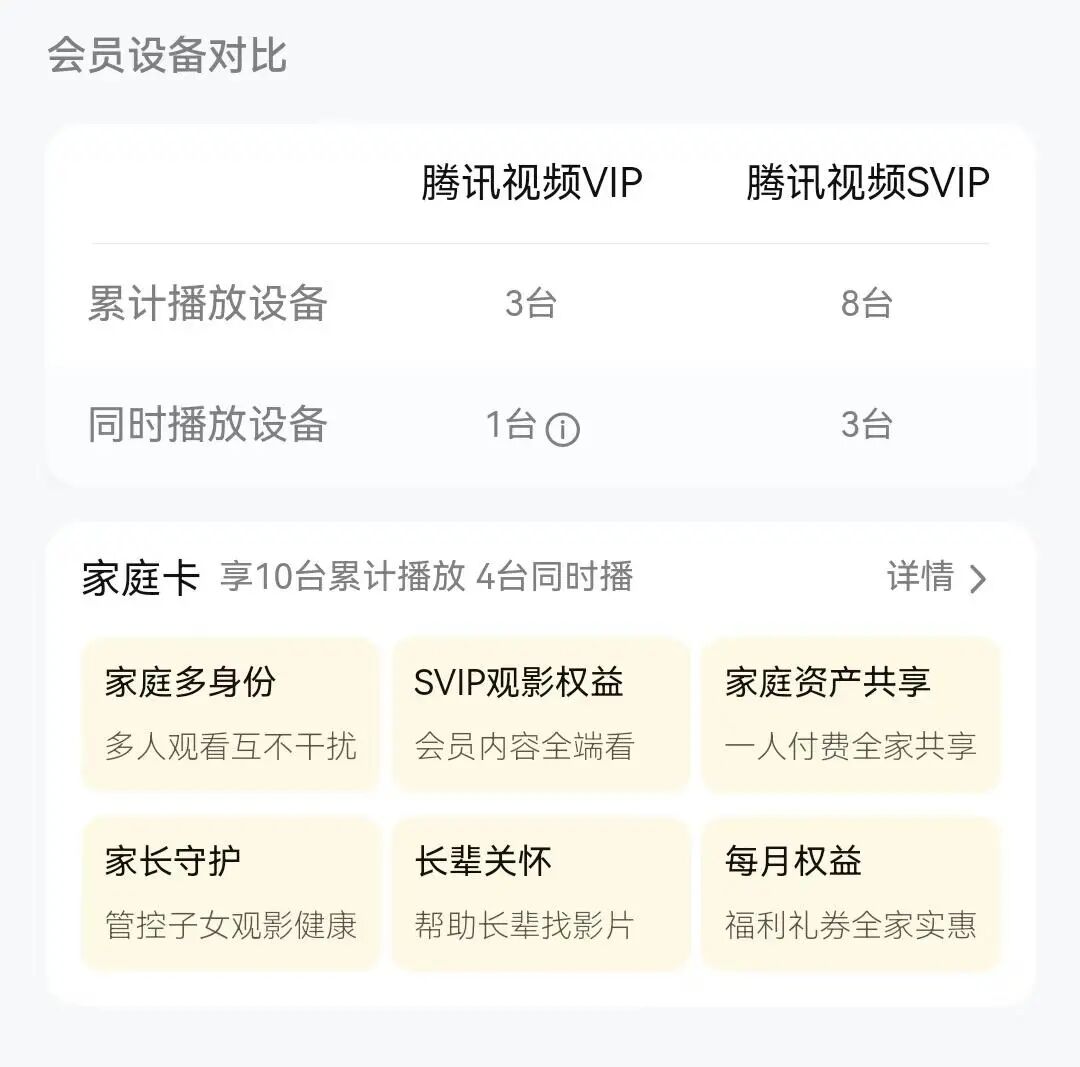 据《南方都市报》,早在2023年,腾讯视频和优酷率先将会员等级分为了VIP和SVIP,后者最开始与前者的主要区别在于“可使用的设备数量”以及“是否可全端播放”。2024年12月,腾讯视频会员权益进行调整股票交易配资,VIP会员支持登录和同时播放的设备数量均减少。